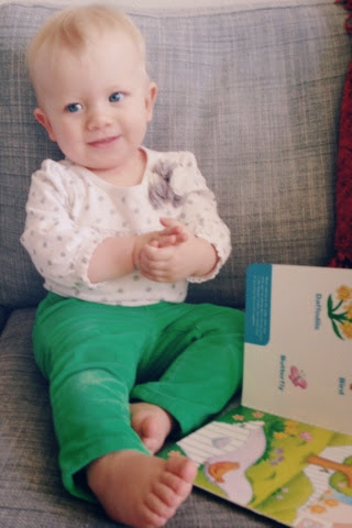 She still loves all of the things mentioned in Thirteen Month Faves, with the addition of her new Flinstone-esque baby car. She's also much more into her stuffed animals and babies; she cuddles them, boops their nose, and kisses them. She likes to carry her toys with her when she crawls around now too and definitely loves to play the pass it back and forth sharing game. Balls are still one of the biggest hits, and she's gotten really darn good at rolling it to us. She also really enjoyed the Disney movie "Tangled", she happily sat through a good majority of it. As for books, we read like five a day and she loves them all. I'll have to do a separate post on her library soon.